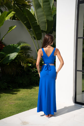 Elevate your summer wardrobe with the Icone Versatile Wrap Around Top in stunning Azul Blue. A sophisticated, multi-way piece designed for endless styling possibilities.